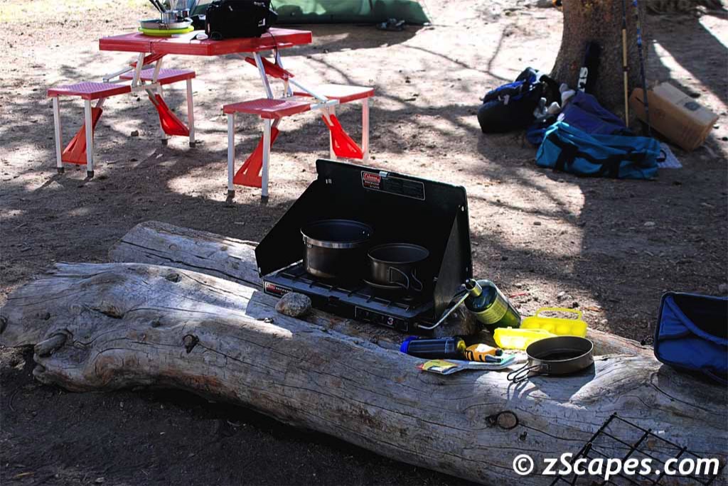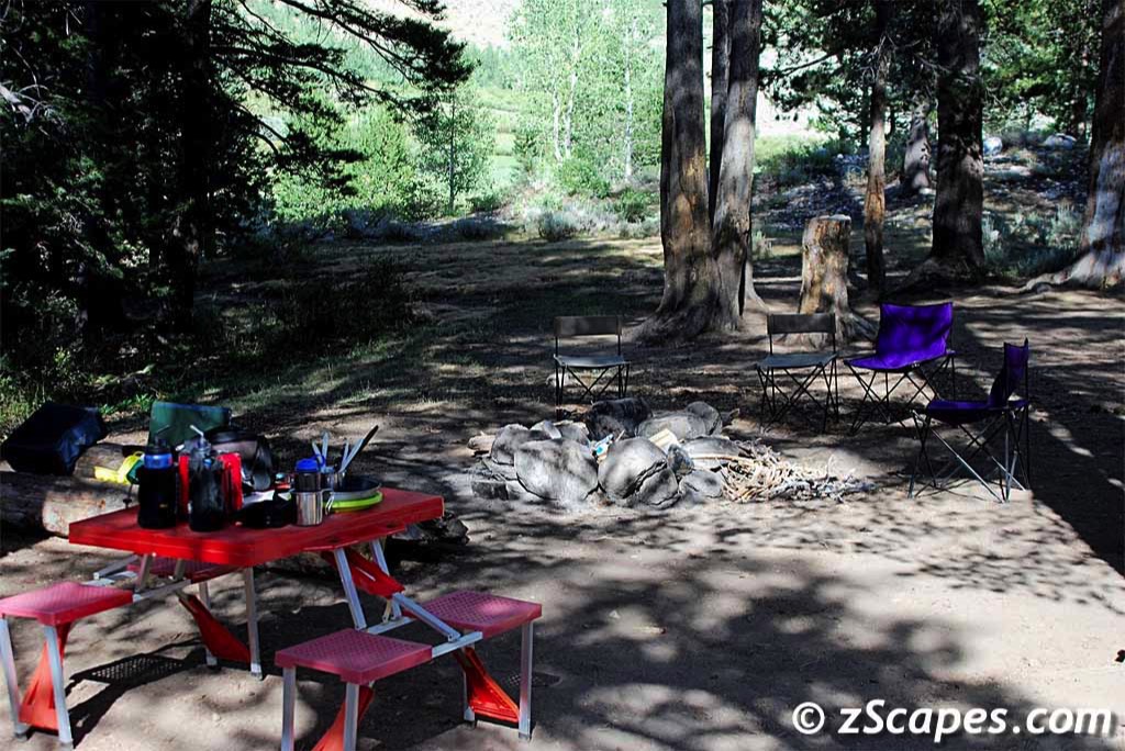 - Day 3 ** Base camp ** Kennedy Lake 7805ft ** N38.26006 W119.65313 ** Trout, hot dogs and leftover Putanesca with a healthy dose of red and white wine