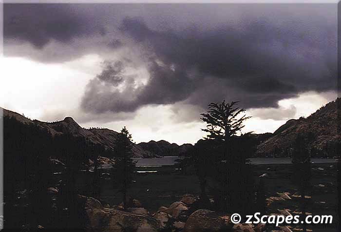 Long Lake was our first destination and we hiked in under cloudy skies. The next day was spent hiking and fishing in no particular order, and we managed to get a birds eye view of the lake from a majestic granite dome that stood guard. Day three greeted us with gray clouds and it was time to move down to Cow Meadow Lake. We arrived to clearing skies that would not last. A quick clean up and while dinner was on it's way, the clouds blew open. Cooking with your body over the stove to get something hot into your soul to last out the night is no fun. Not to mention that those clothes had to stay outside and away from the camp to keep away the nosy bears. The rain stopped for a moment and we took a quick walk around before night fall, and encountered the sure signs of a bear roaming the area and decided it was best to get to sleep. That night was a display of natures finest light show and we ended up in our tent for 12 hours.