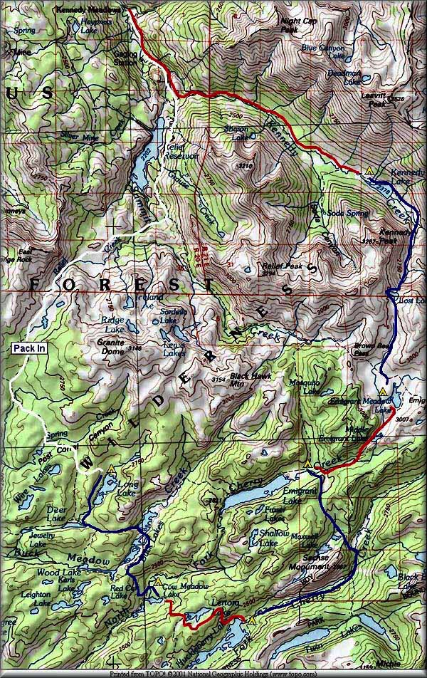 Well finally were on our trip. This was three years in the making, frustrated by heavy snow falls the past three years and our goal to be the first in. Two times we optimistically planned our trip under the fantasy that the snow would melt and part in front of us for a loop trip around Emigrant Dome, the geological center of Emigrant Wilderness. Two years we had to re-route and swing between Kennedy Lake and Relief Reservoir. One of those years we encountered 70 mile an hour winds that our trusty tents stood to the challenge. Another, we hiked up past the snow line and made a night of it and camped under the protective boughs of ponderosa pines.
