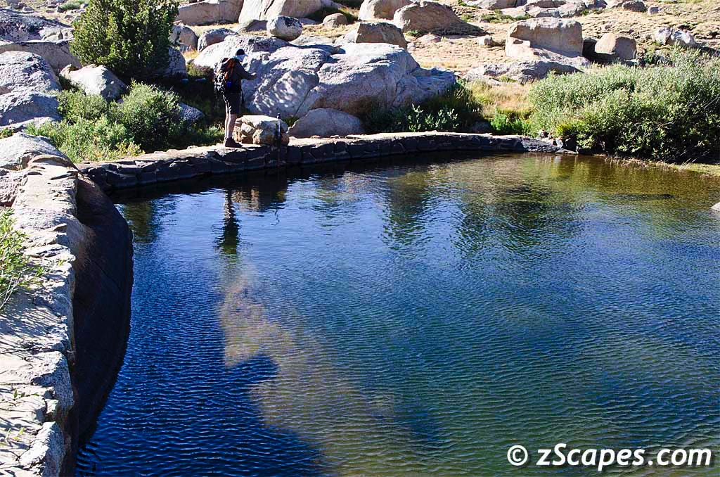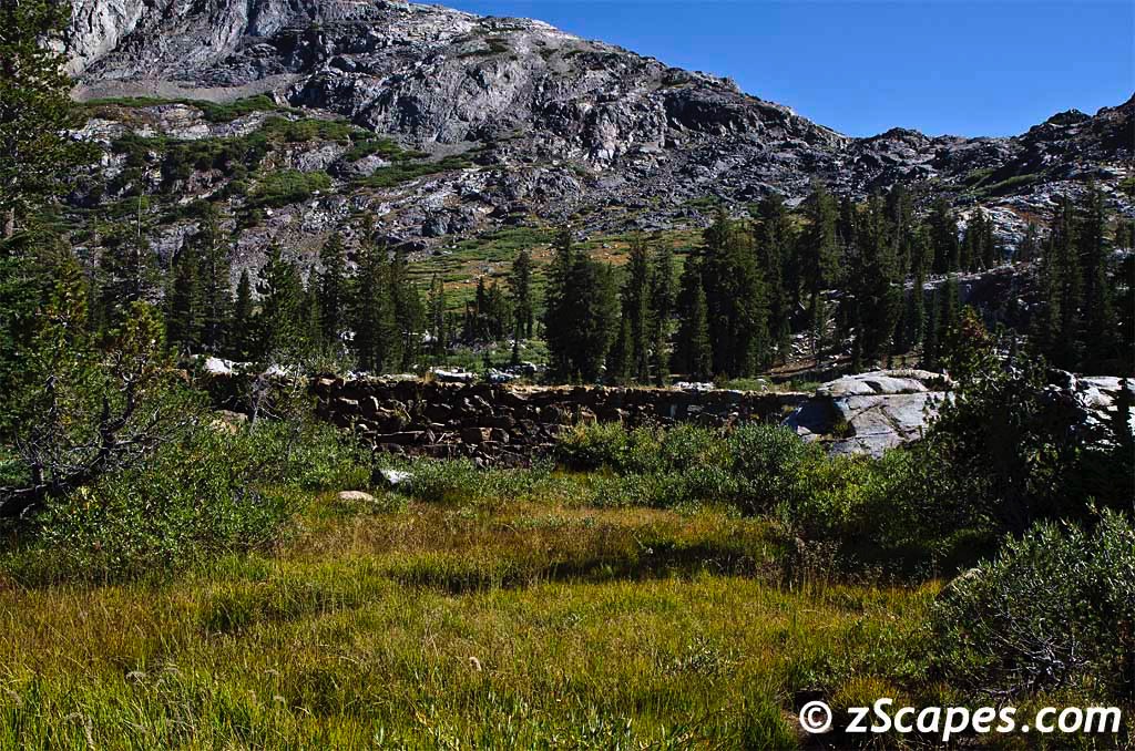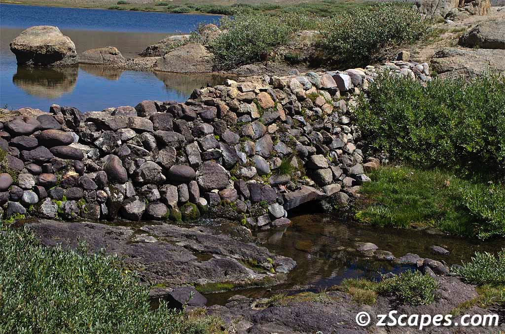 Year 26 was to be a short trip for our annual wilderness trek because a dry snow/rain year had taken a toll on most of the Emigrant. However, a series of check dams at High and Emigrant Meadow Lake hold back the winter snow melt-- as they were intended when constructed between 1920 and 1951-- and Emigrant Lake was still high. The series of 18 lakes with 48 small streamflow dams, mostly using native rocks, was the brain child of Fred Leighton a local outdoorsman who installed them to hold back winter snow melt to create sustainable fisheries, increase riparian meadows for wildlife forage and provide emergency water storage. Leighton began this as a conservation project prior to the arrival of wilderness designation in 1975. Unfortunately, politics has taken a toll and we now are now seeing a slow deterioration of these unobtrusive structures that are woven into the history of these unique lands. (click here for a USFS 2003 listing of Emigrant check-flow dams)