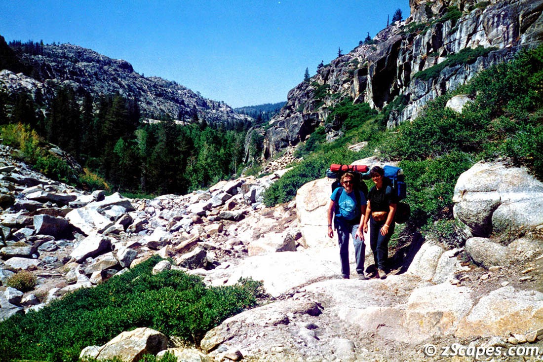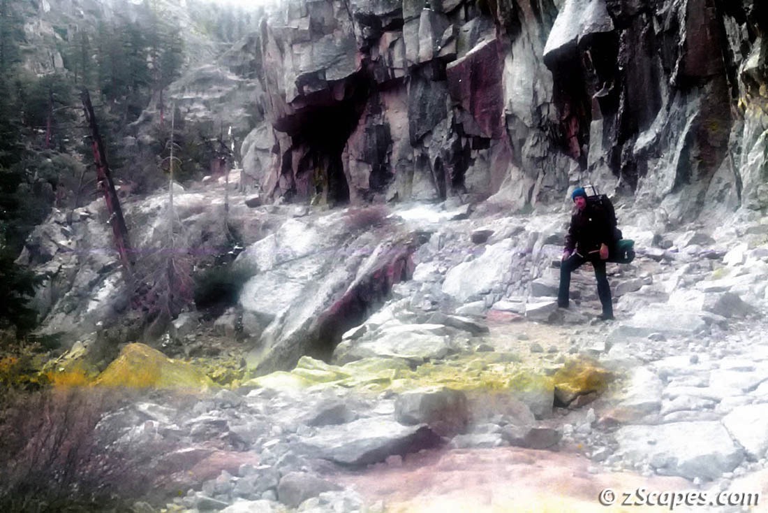 Well It all started in 1986 after a camping/fishing trip with my buddy George and Gandalf, a fish hungry Alaskan Malamute, to Kennedy Meadows. As we explored the area, specifically upper Kennedy Meadows, George looked towards the high country, turned around and asked, 'what's up there?" As I had taken one trip into the Emigrant in my high school years with my Dad, Colin, Paul and my school friend Fred, I replied with total confidence, "some gorgeous country" and that was all it took to start these many years of exploring and friendship. Our first trip was a short weekend in early May, and as novices, well unprepared for cold nights and life removed from car camping. The snow and cold of Friday, transitioned to a glorious Saturday & Sunday that proves a central core of the wilderness experience: If you do not like the weather, just wait an hour or so!