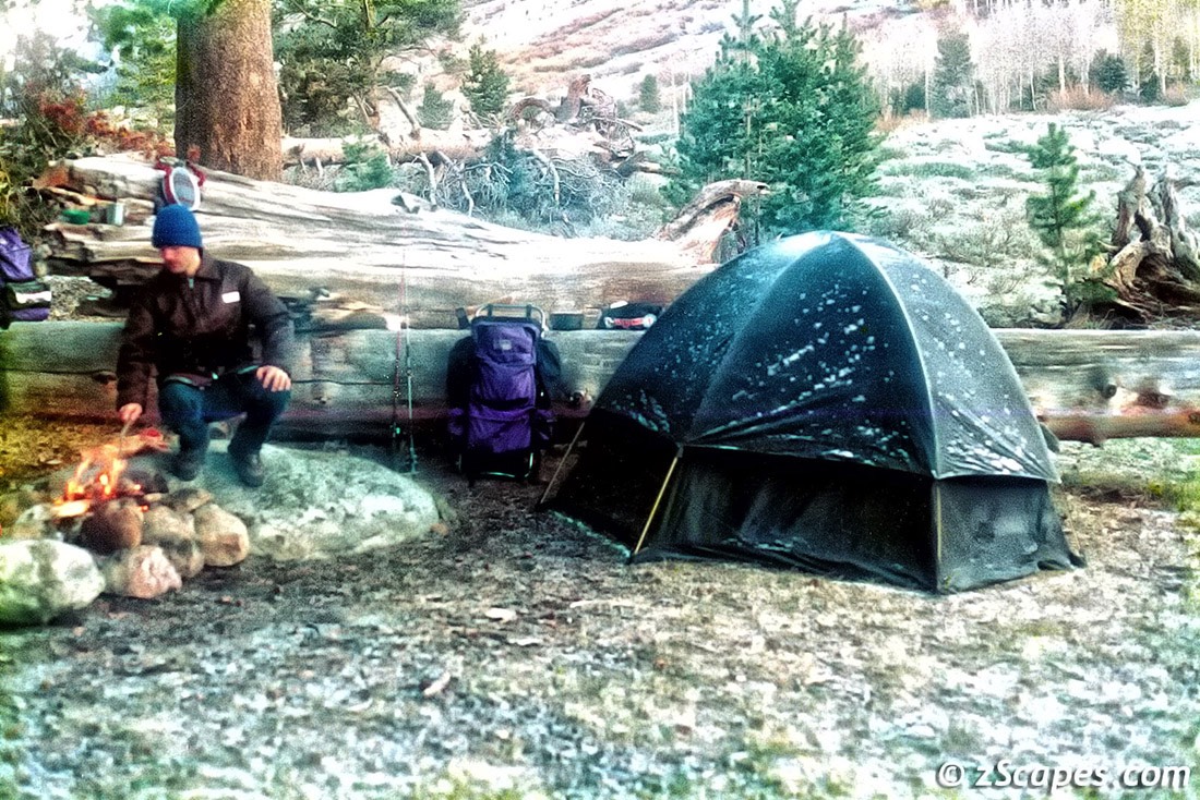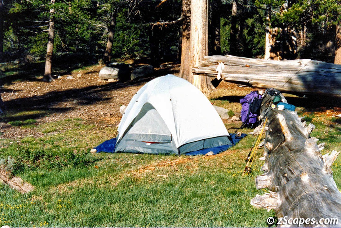 This was a memorable trip as we experienced all 4 seasons within 3 days. Super warm to start at Bell Meadows, as the weather started to cool down the rain came, snow at night, rain on the way out and finally back to fall conditions as we arrived at the trailhead! Biggest surprise was a bear roaming around our campsite at nite, sniffing at the tent door and leaving a big footprint in the snow just outside our vestibule for an early morning wake up. One lesson we did not need to learn, hang your food in bear country, as we thwarted the bruin attested by all the deep footprints right below the hang. A record we have kept to this day (fingers crossed for the future). On the way in we came across a hiker with just the clothes on his back, filtered some water for him as he told us of a bear attacking his campsite as he fled in the middle of the night. When he returned in the morning, the tent was shredded and his pack devoid of anything edible. He gave us vague description of where he was, but it was until after the visit, did we discover his campsite maybe 200 yards away! Checkout our August 2011 trip for the best bear tale so far.