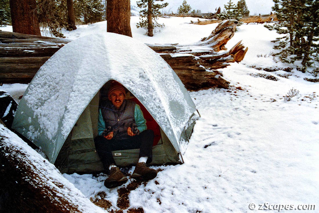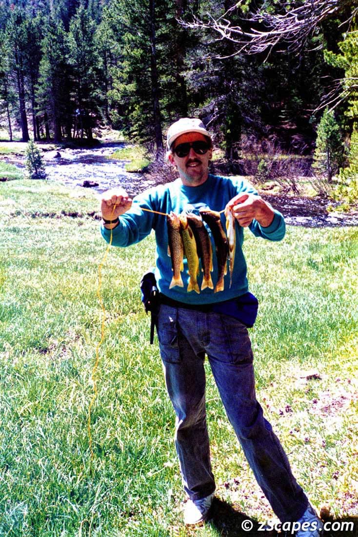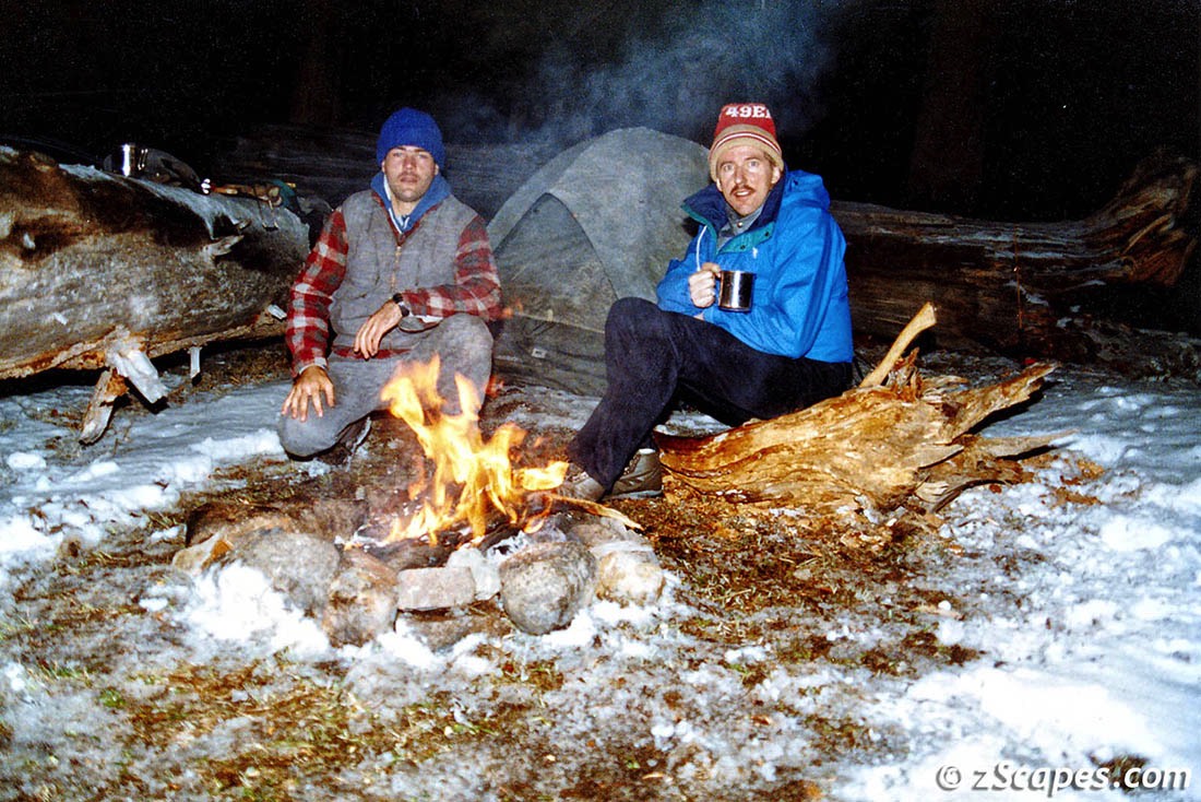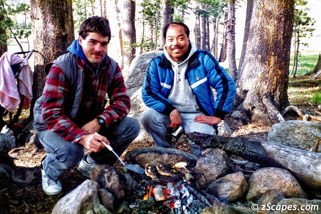 The 90's started out on a slow pace, with just 1 backcountry trip and 1 car camping outing. We had a guest traveller, Mike Woo PSA compadre, who was brave to venture in with us, had a good time (so he told us), but ended up like most, not returning for an encore! It was low snow year but the conditions were ideal and the fishing did not disappoint.