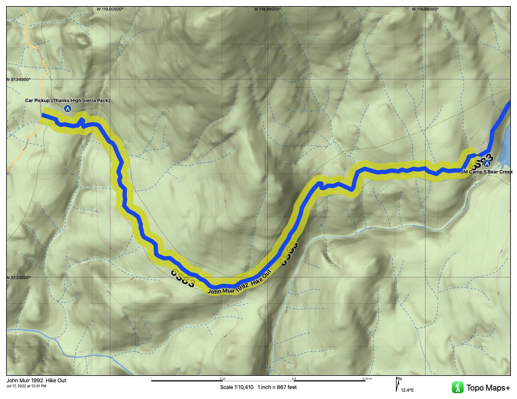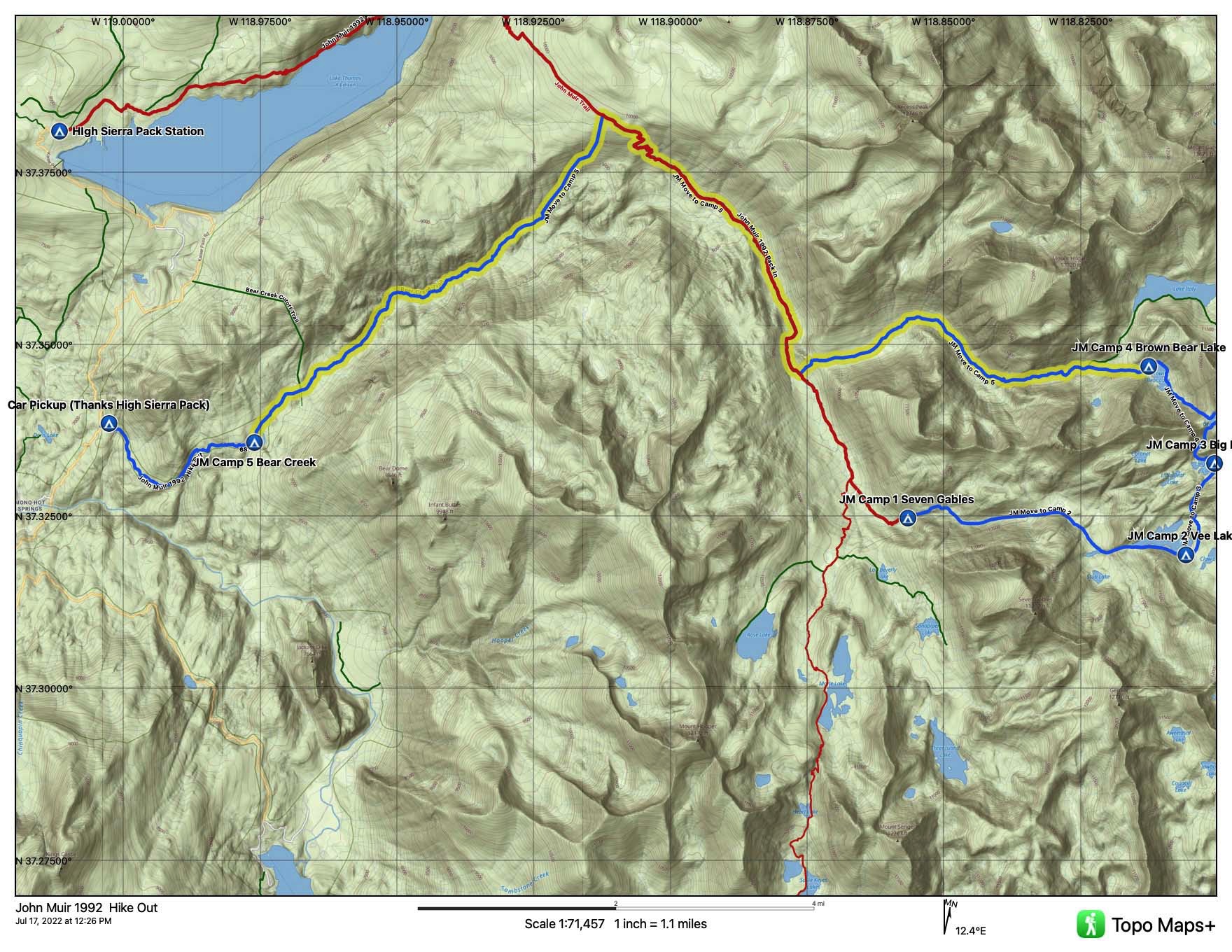 | Day 9 Day 10 | Move to Bear Creek Dam Hike out | 13.8 miles 2.3 miles | Total elevation 5,762 ft Total elevation 512 ft |