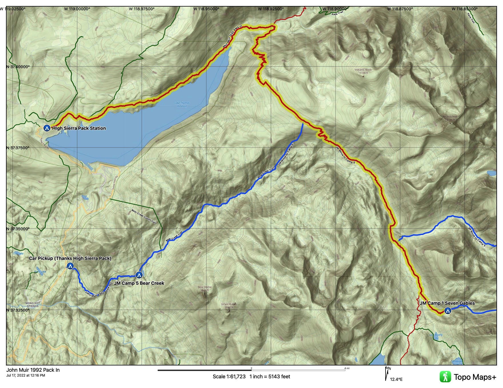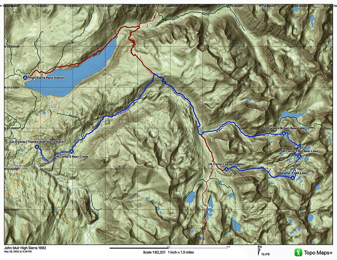 After 5 years of plowing through the Emigrant, it was time to take on a new wilderness and John Muir fit the bill. Believe this was George's pick and was also to be our longest trip to date. Given the distance to the Seven Gables Basin, pack in was a must and the High Sierra Pack Station was our jump off point. Great outfit, getting us to our drop point and also positioning our SUV so we could walk out a different route, basically avoiding a nasty up and down. This area has some of the most spectacular scenery, rugged and raw high elevations (10k+) and lightly traveled. Bonus was bluebird skies for the entire trip.