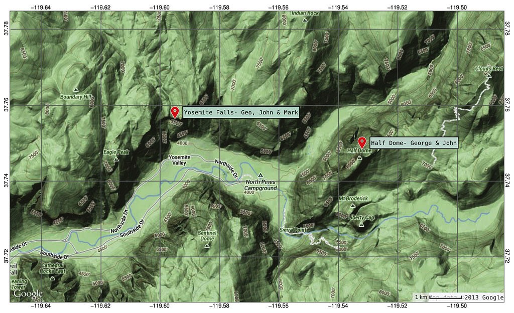 Yosemite in the fall!!! We had our eye on getting up and down Half Dome with two overnight camps at Little Yosemite to make it a an enjoyable weekend trip. However, the God of Permits was not in a gracious mood and struck down our well-meaning stand-in-line early-morning attempt. So we opted to make the best of it in one of the crown jewels of the National Park system. George and John decided for a one-day attempt and I bid them farewell, went back to sleep and got up to explore the valley and Tuolumne Meadows. It was the perfect day for both activities and the results can be seen below.