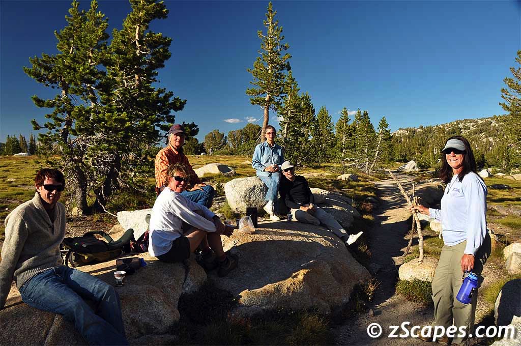 When you consider the odds of making it through the lottery to get a slot on any Yosemite Hi-Sierra Camp trip and then to get hooked up with a stellar cast of fellow travelers, the stars must have been aligned! George and I picked this time and place mostly to ensure that Sheridan would be our guide, however meeting Debbie and Dan, Izzy and Chris was to be another highlight of 6 days in the Yosemite backcountry. We all hit it off and quickly became the 'Sheridan Gang', a kinder gentler version of gentleman 'Black Bart' who successfully robbed stage coaches on their way to Yosemite in the 1870's. He never fired his unloaded shotgun, was able to pull off 27 holdups without a life lost and lifted enough loot to reside in San Francisco as a respected citizen.
