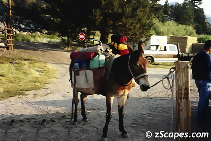 The millennium had dawned, and we were posed to make our Tower Peak trip after last years near miss. But it appeared at first that the powers of luck were not going our way. To start it off, George's flight from Boston was delayed by 24 hours because of severe thunderstorms in the Midwest. He arrived and we whisked our way up to the Sonora Pass before stopping to sleep for the night. As we made our way to Leavitt Meadows and we ran through alternate plans, we became acutely aware that timing was not on our side. We were hoping for a break of luck and that the Leavitt Pack station would be able to take us up on Monday, or otherwise we would be pushing our itinerary to meet George's father at Bonnie Lake. Luck turned our way, and thanks to Bart and company, we were able to get started.