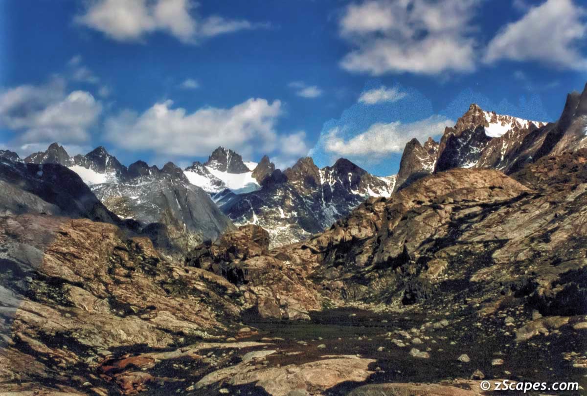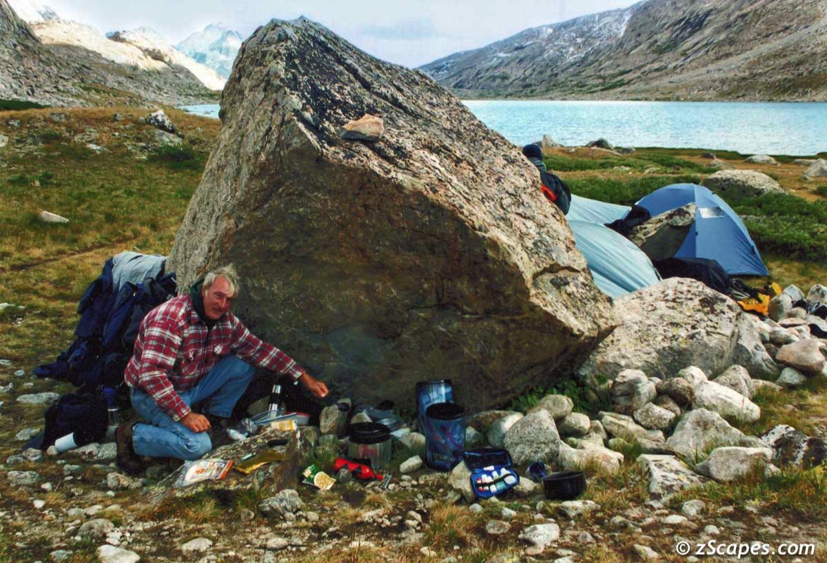 Another trek in George's quest to summit all 50 high points in the US. On this trip he brought along some serious climbers to attempt Gannett Peak in Wyoming from the Wyoming side. We started in Lansdale after flying into Salt Lake City, slept in our rental care at the trailhead and packed out the next morning for our 15 mile drop off, with a short hike to the lake. The terrain was very different from the years of hiking the Central California Pacific Crest as it had a raw starkness to it that I appreciated. The climbing team acclimated for a day and then headed out on an alpine start to bag Gannett. I stayed behind with George's dad and as he fished his heart out, I scrambled around taking pictures and soaking in the solitude. A ton of peaks in this rugged section of Bridger Wilderness. Unfortunately, the peak attempt was elusive as the team had to turn around due to heavy snow drifts. We still celebrated that night and packed up for the long ride home. One twist in all of this, was showing up at the trailhead to a flat tire on our rental! We got that taken care off with the help of the packers, had a good hot meal in town and headed for our flights home. All in all, another good day in the mountains.