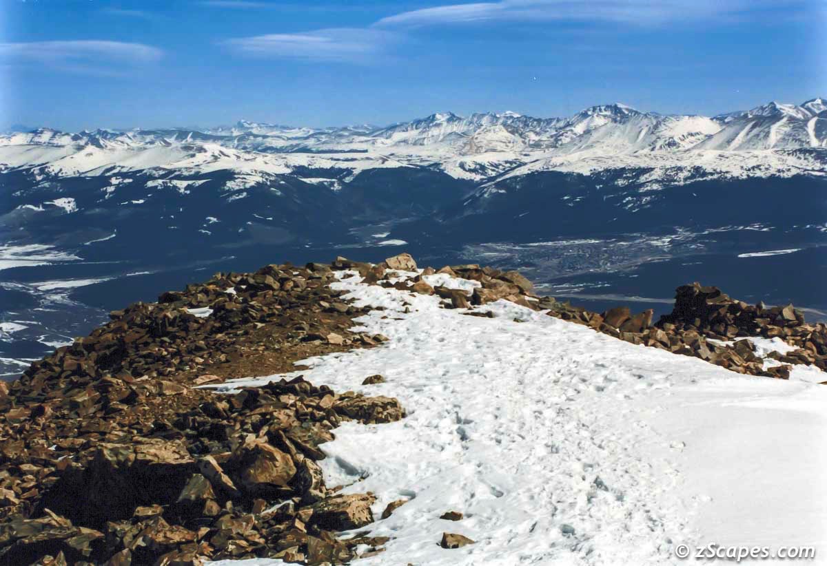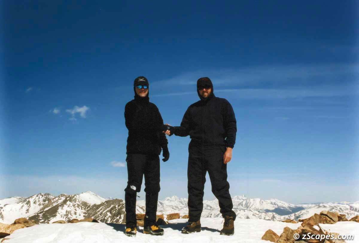 This was to be George's second attempt on Mt Elbert after hitting a tough break in 2003. As is the norm, we smashed this into a long weekend flying into Denver and driving to Leadville for the night. At 10,158 ft, Leadville is the highest incorporated city in the US and boy can you feel it after starting the day at sea level and then lugging up your gear to the second floor of the Delaware Hotel. High speed acclimating! Next day we are the trailhead and on our way in favorable weather conditions. We camped overnight right at tree level, had dinner and rested for the next day. It was a surprising moderate hike/climb and we had 360 degree views. A little Tylenol to push back the light headedness and off we went. Success! The hike out was effortless with some postholing from mild temperatures. Only hitch for me, as George was off to do some skiing in the area, was the 2 hour stop on H40 and the mad dash to make my flight back to SFO. Last one on the plane, huffing, puffing and being asked my seat mate if I was ok! Slept the whole way back!