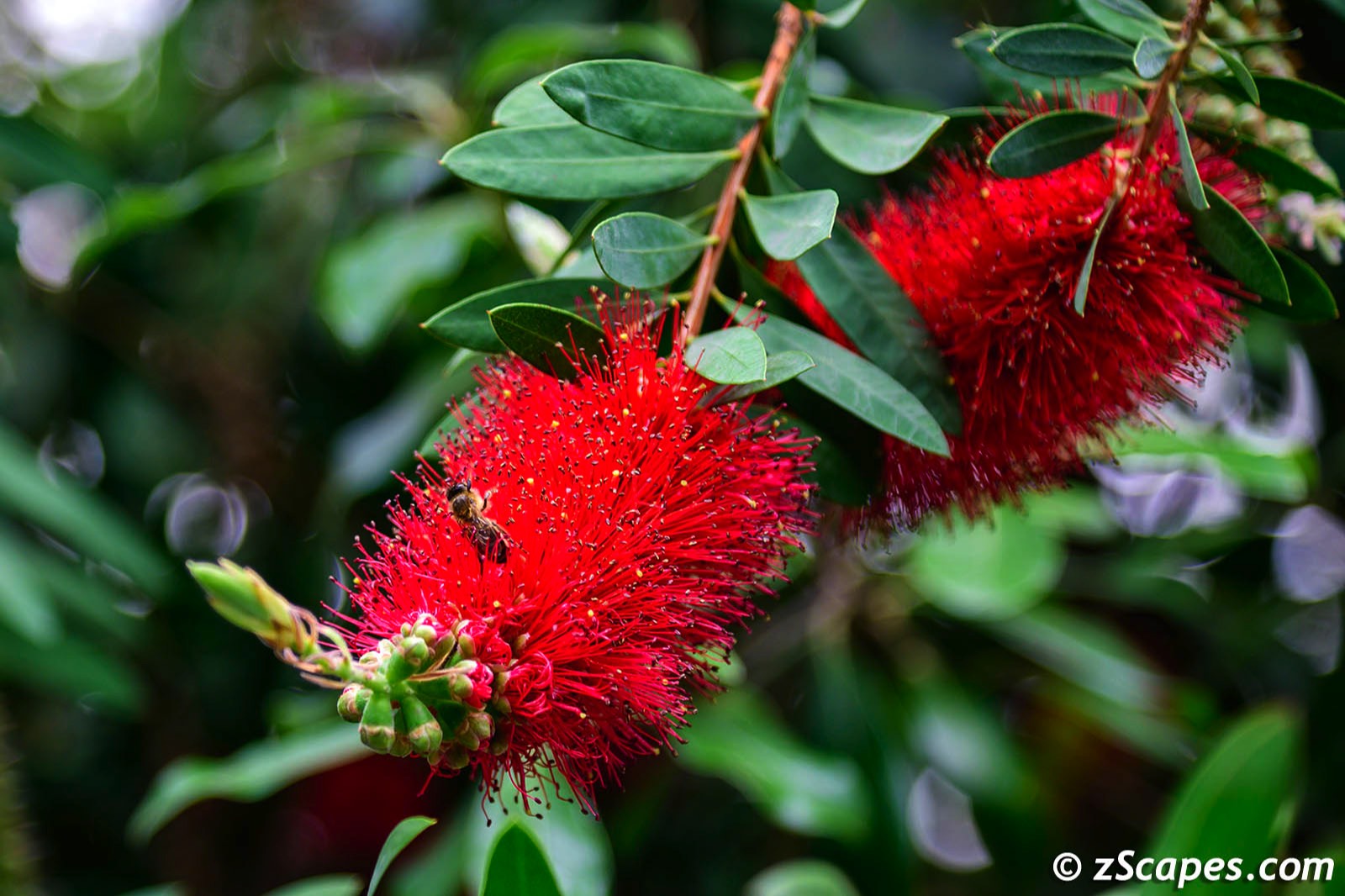 Cross Rail Gardens Bee on Red Flower