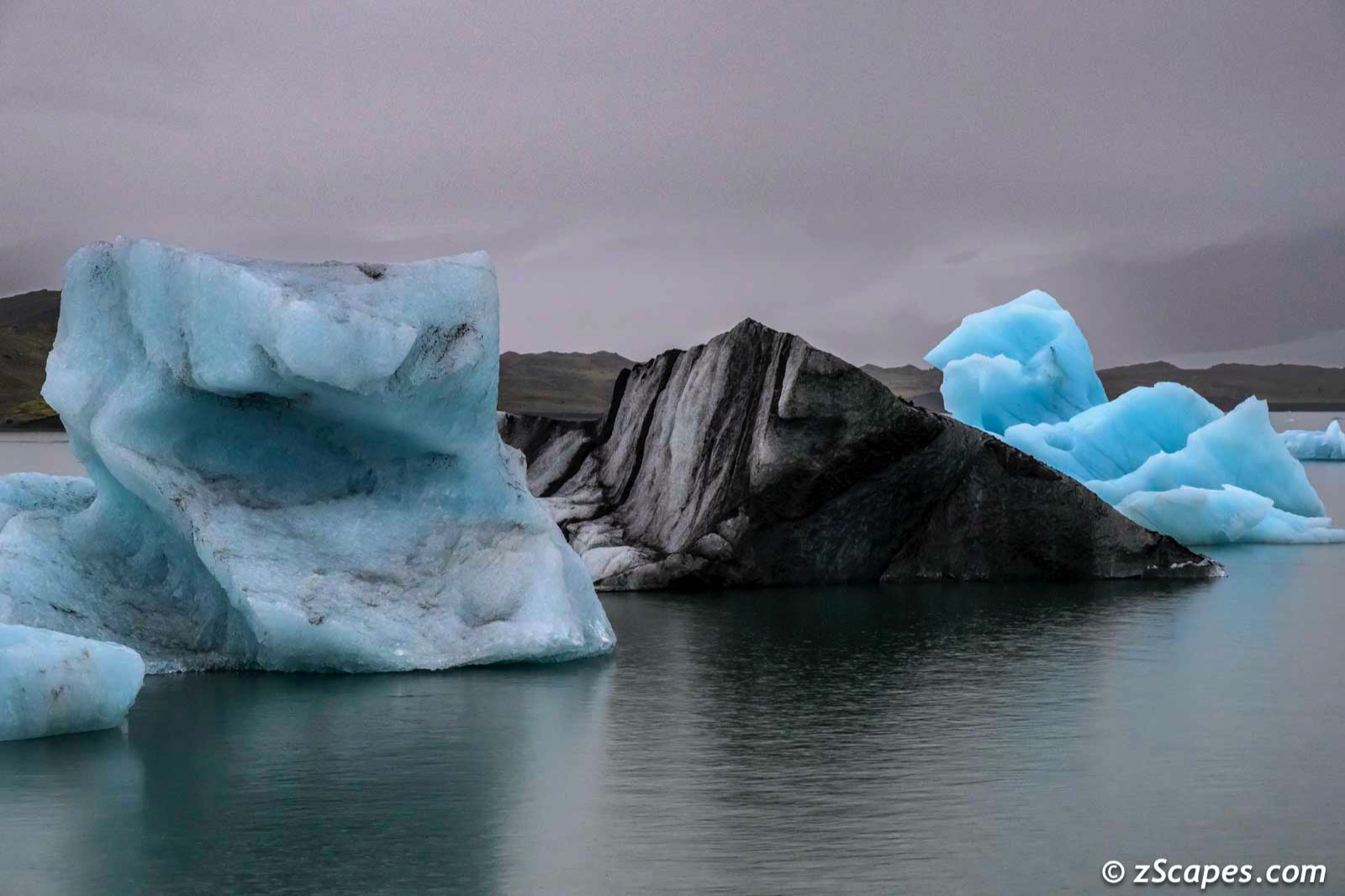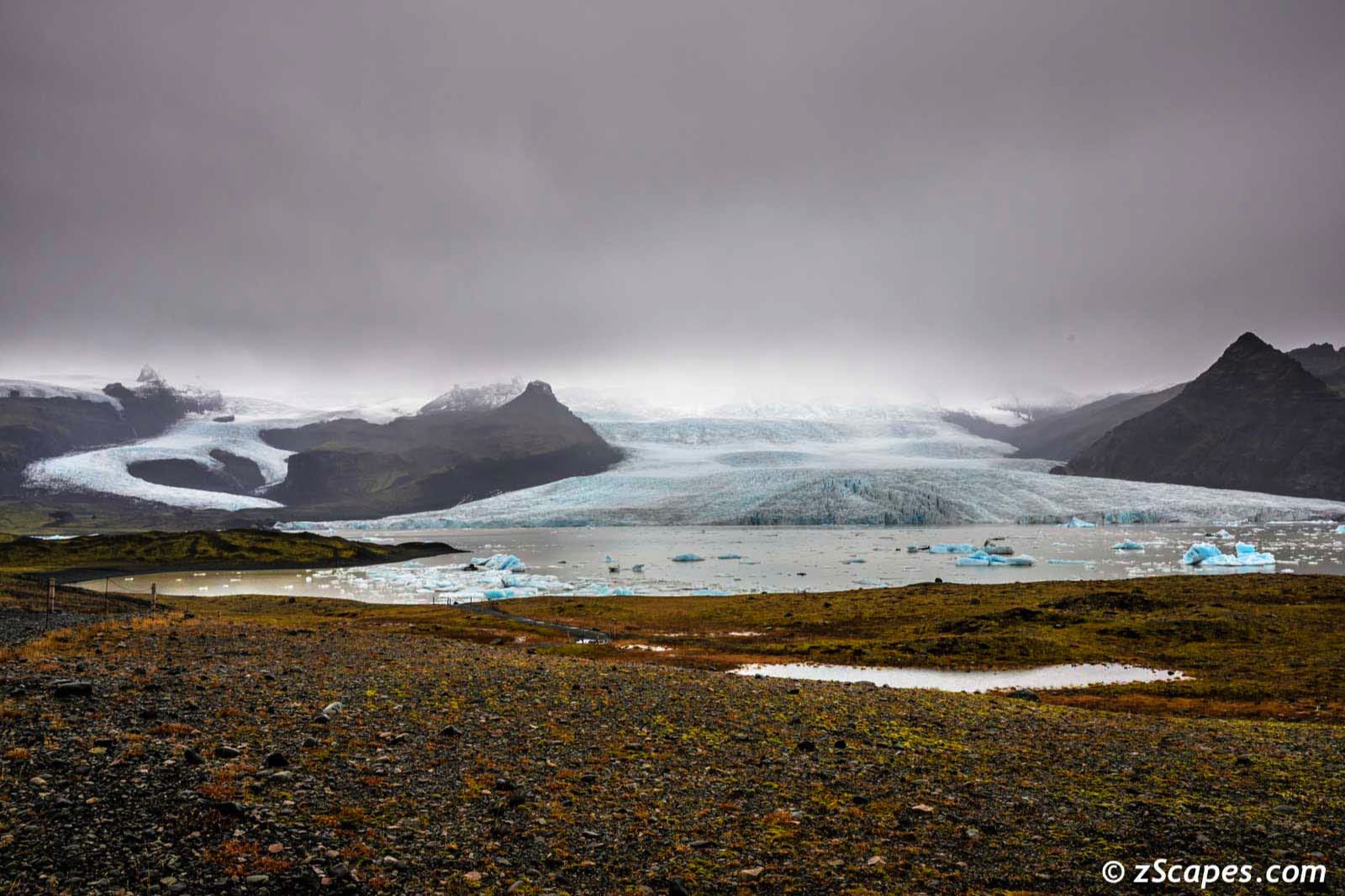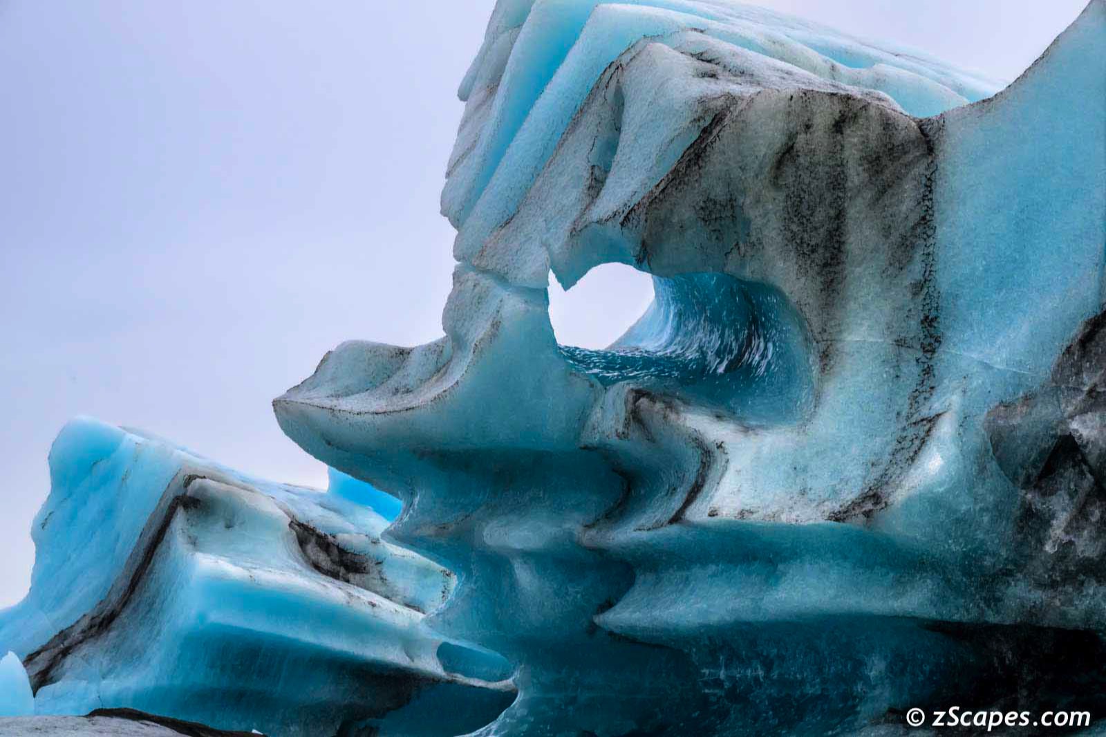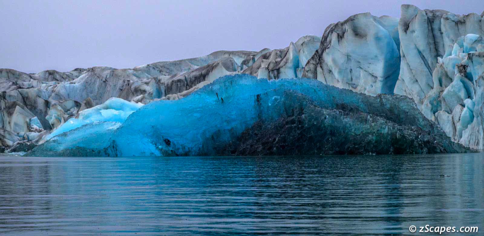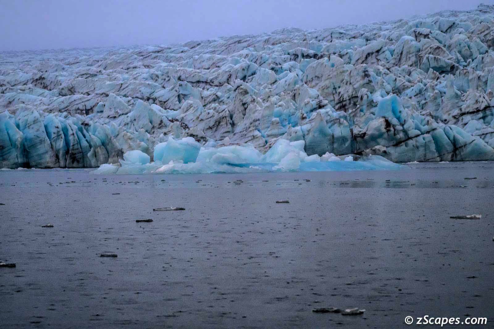 Today was all about Glaciers in Vatnajökull National Park. First a short visit to Breiðárlón, then off to a Jökulsárlón Glacier Bay zodiac tour, followed by Diamond Beach and concluding with a Falljökull glacier walk! Vatnajökull is a typical temperate ice cap composed of ice domes and numerous outlet glaciers, some of which surge at irregular intervals. Vatnajökull ice cap is ca. 7700 km2 (and covers ca 8% of Iceland) and is still Europe’s largest ice cap by volume, although it has lost more than 15% of its volume during the last century. It conceals seven active central volcanoes, valleys and glacial troughs. ~Wikipedia~