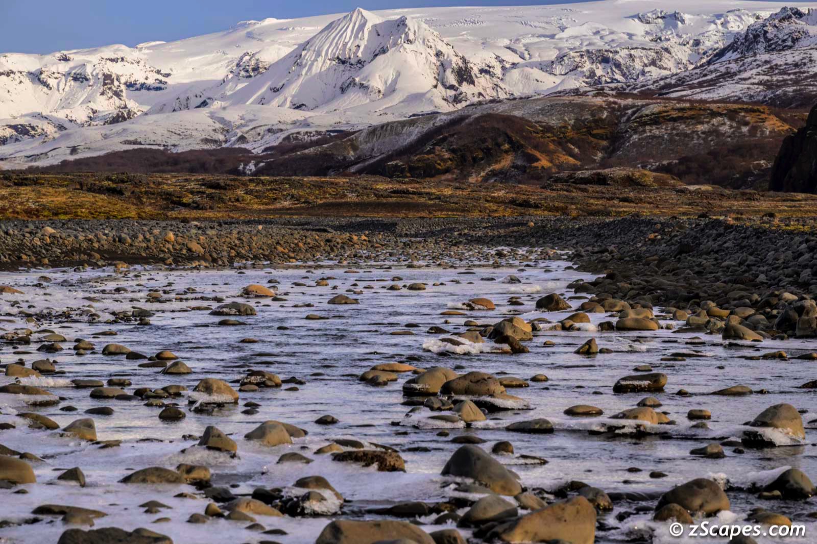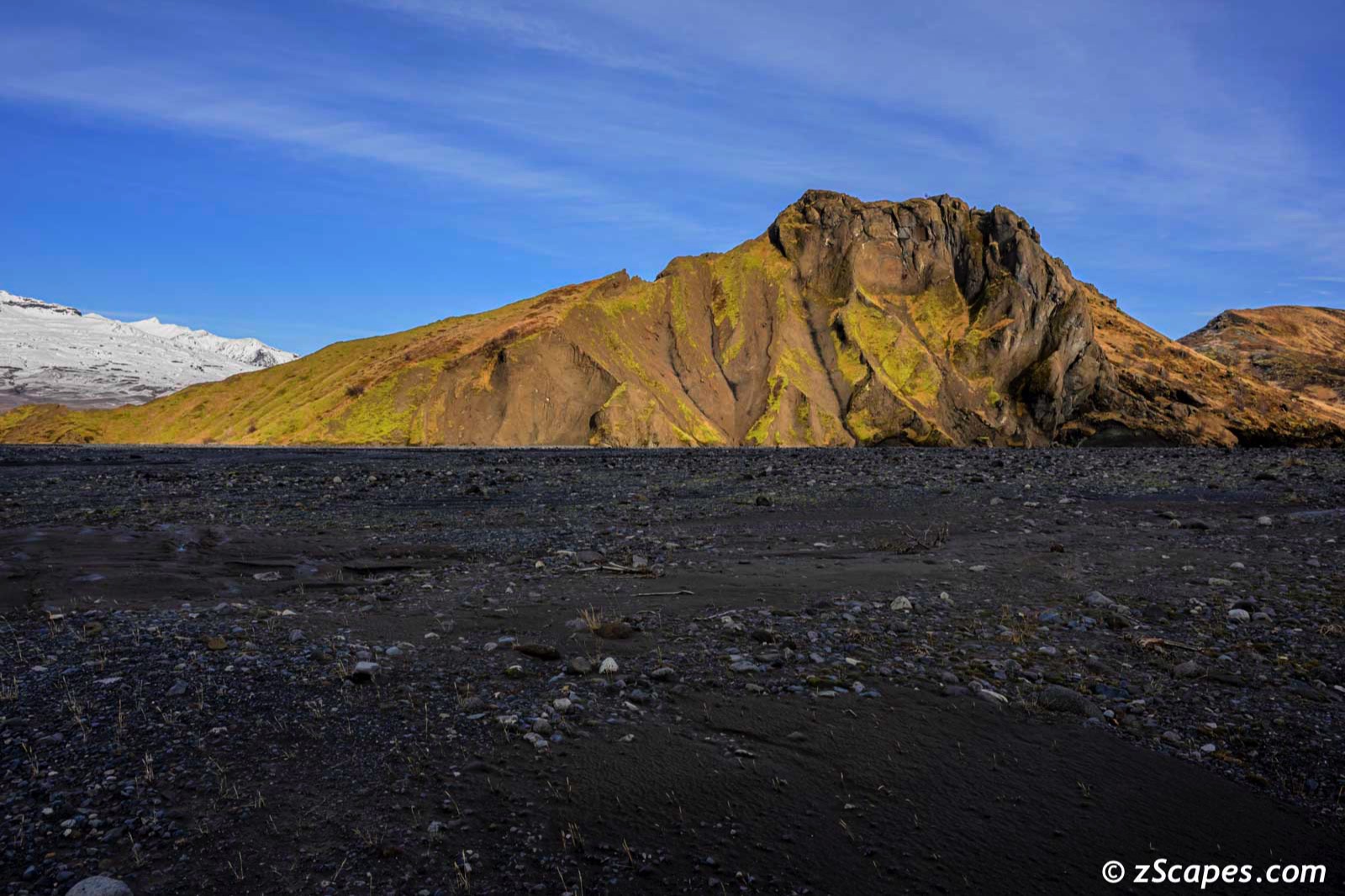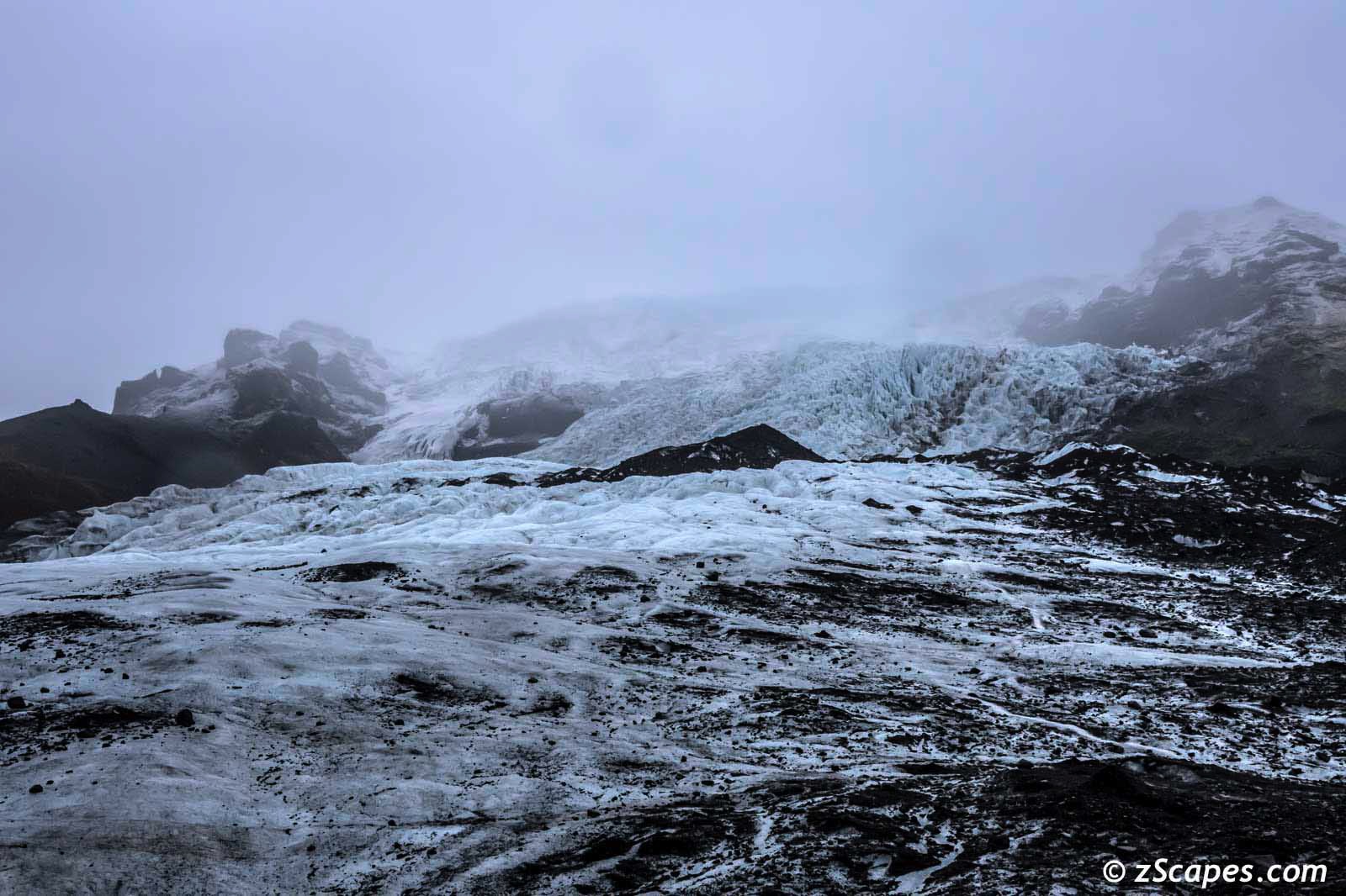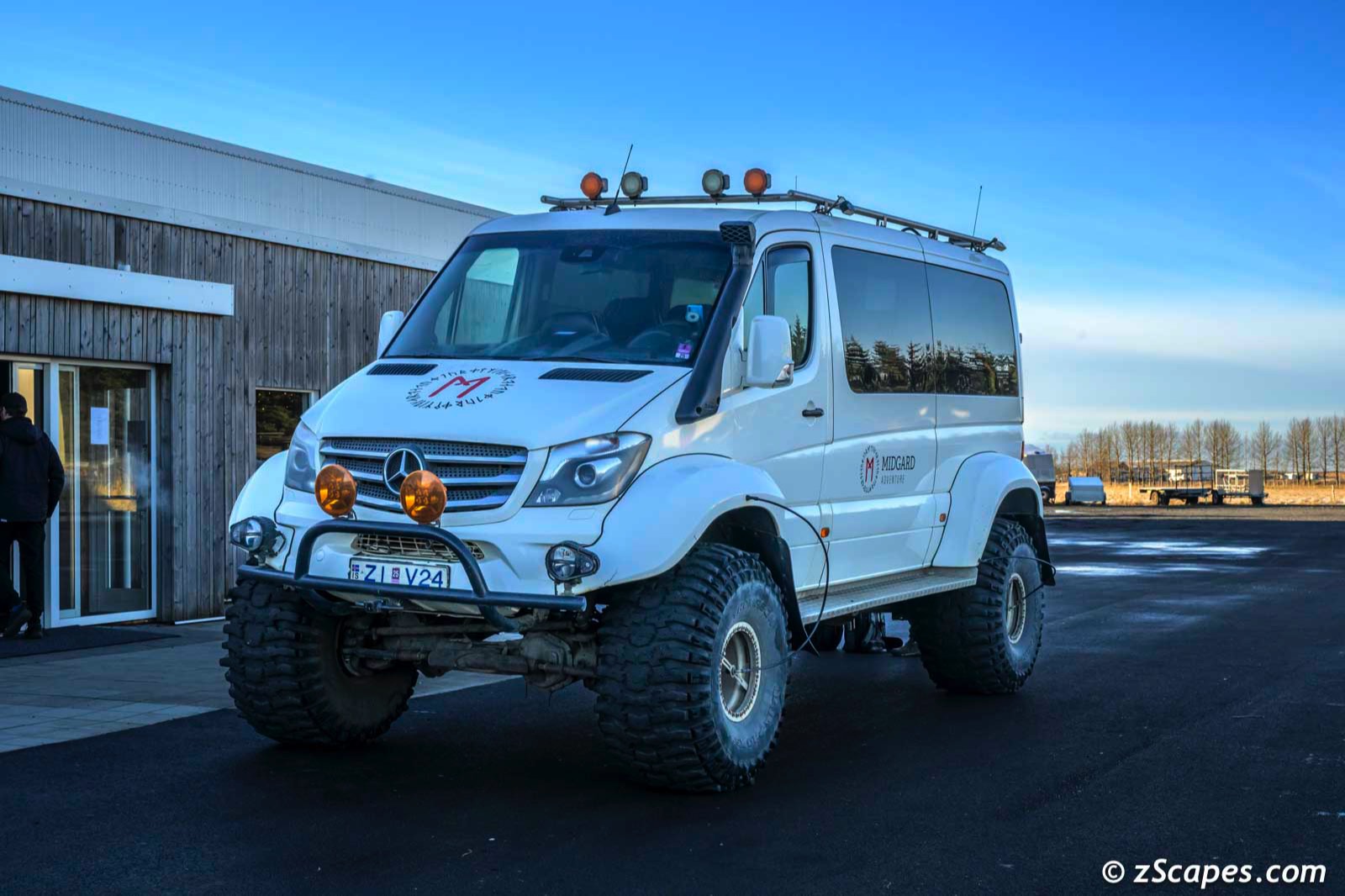 For our escapade today, Midgard Adventures was to be our guide traveling in what I would describe as a Mercedes-Benz 4WD on super steroids! It was so high off the ground, some of us needed a step stool to get in an out. First stop, Landeyjahöfn Back Sand Beach that stretched for miles and was deserted. Seljalandsfoss Waterfall was next where you can walk to the back of the fall and get a good misting. So far, driving in the super buggy was a piece of cake. Then we turned inland to navigate the rock roads and trials of Thórsmörk (*Thor's Valley) to find ourselves at the Gígjökull glacier. And then the navigating, rock hopping and river crossing got really interesting. We were treated to lunch at the Volcano Huts, a popular campsite and resort. An arctic fox was dashing around but slipped away before I could get a proof shot. At this point we were deep into the Southern highlands with the Eyjafjallajökull Icecap ever present and towering above us. Time to leave with one last stop at Gluggafoss waterfall before we headed back to Hotel Ranga.