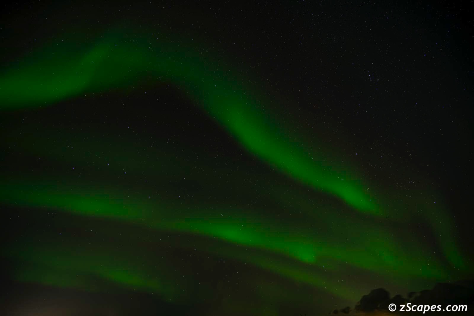 A phenomena I have chased for many years. When I was traveling to Alaska in my FedEx days, I timed my visits with high KP events to no avail. Cloud cover was my foil! Now the opportunity to be in Aurora Borealis territory and a hotel wake up call for the 'lights' (no guarantees), we hit the jackpot twice. Once at the Hotel Ranga mid-trip and once at Silica Hotel at the end of the trip. The KP factor was 3-4, so not the most intense, but still beauty to behold.