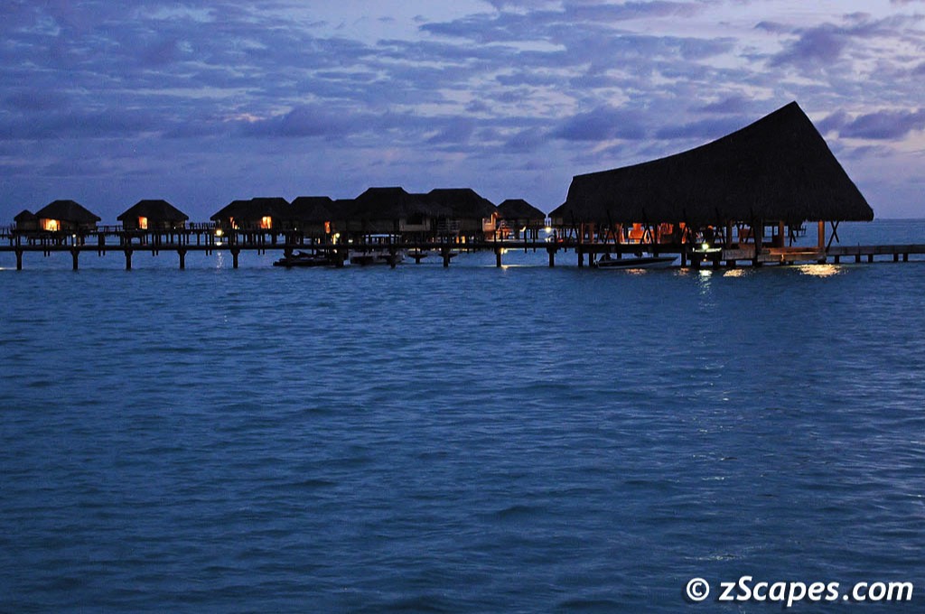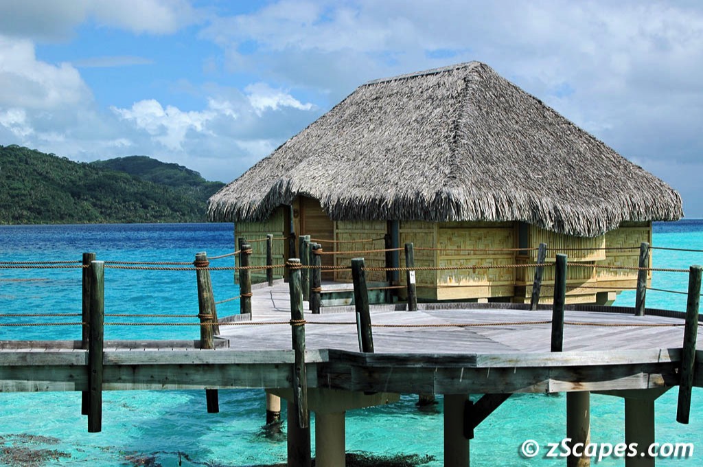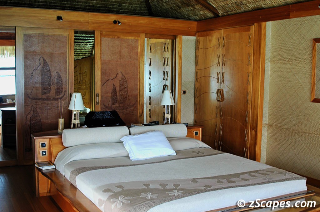The grounds were laid out with an open sense so that you felt comfortable wherever you ventured. The design showed an eco-friendly side, with the main building nestled between tropical trees, that were left in place during the construction that blended into the motu. Bungalows were built over a sandy lagoon, instead of coral reef as many prior resorts exploited. In fact, the Tahitians have it right with strong building codes that do not allow for runaway construction and high rise madness- enough of a reason to visit, to see this part of the world that is not spoiled by unrestricted development.