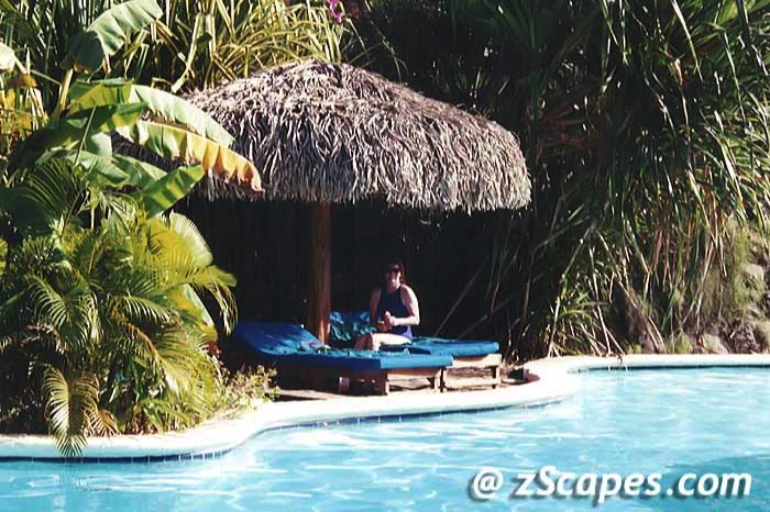 The only glitch was that on New Years Eve, it is a difficult proposition to find another available hotel room in one of the country's most popular vacation destinations. It became my mission in life to find the Holy Grail. As luck would have it, the best hotel in Tamarindo had a room available after I trekked the entire beach looking for any accommodation that would take us out of the rattle trap we were caged in. Just as its name suggested we were on to a higher plane, El Jardin del Eden. It is run by 2 very accommodating Frenchmen, who made us feel at home and put us back on track for a relaxing close to our fabulous vacation.