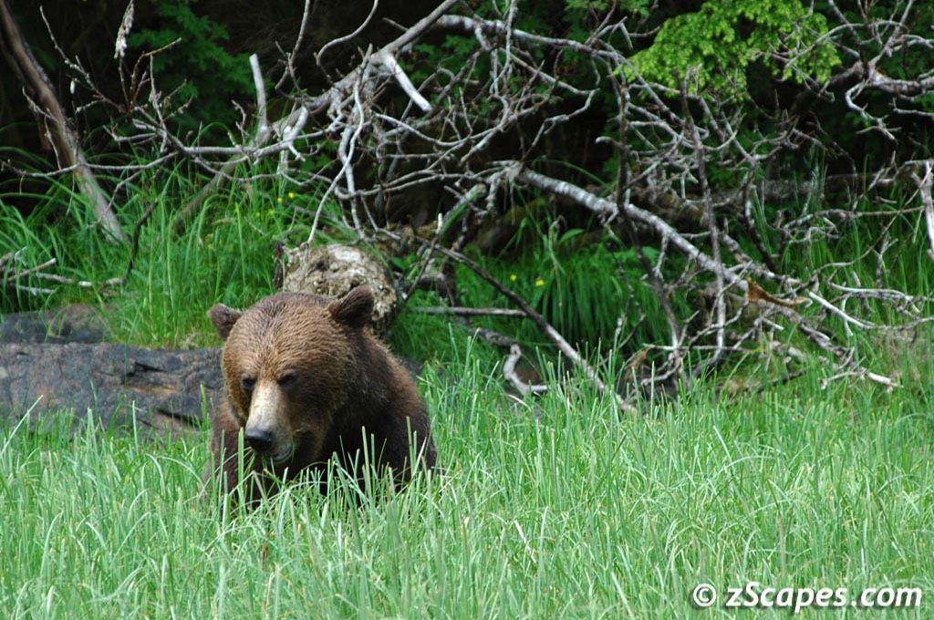Well, one visit was not enough and June 2005 had us back in the northern reaches of British Columbia to experience the Khutzeymateen grizzly bears once again. We planned this year to be on the very last trip so we would have a better chance to see mothers with cubs. Read on to see if we were successful.