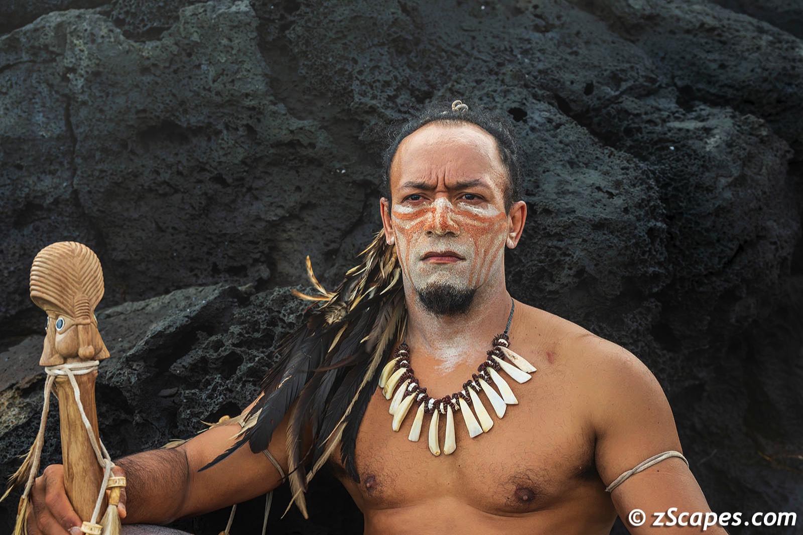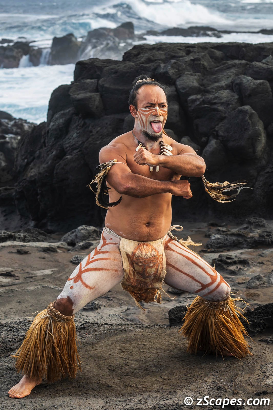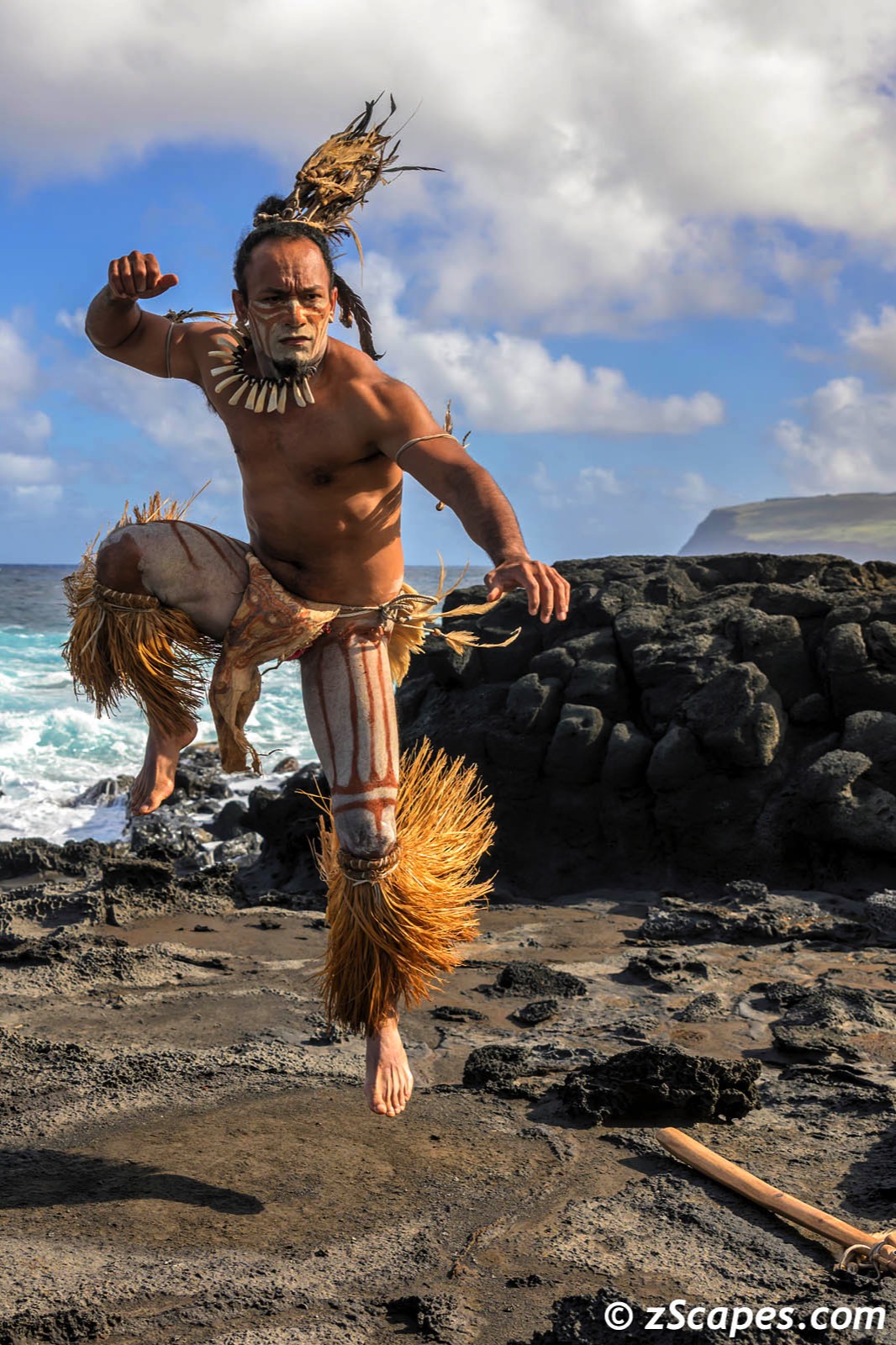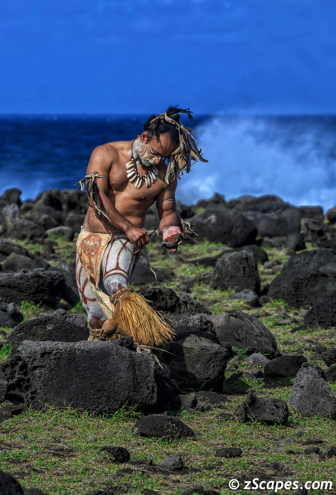 The resort itself is a blend of local architecture incorporating the Orongo warrior clan dwellings design and lines. On every excursion, the guide staff was there to educate and answer our questions bringing to life the landscape and history. On our final day, one of the guides, MeaMea, transformed himself into a Rapa Nui warrior beginning with body painting, showing off some athletic moves and posing for stills. The power and grace of his movements was mesmerizing and we are grateful for this glimpse into local culture.