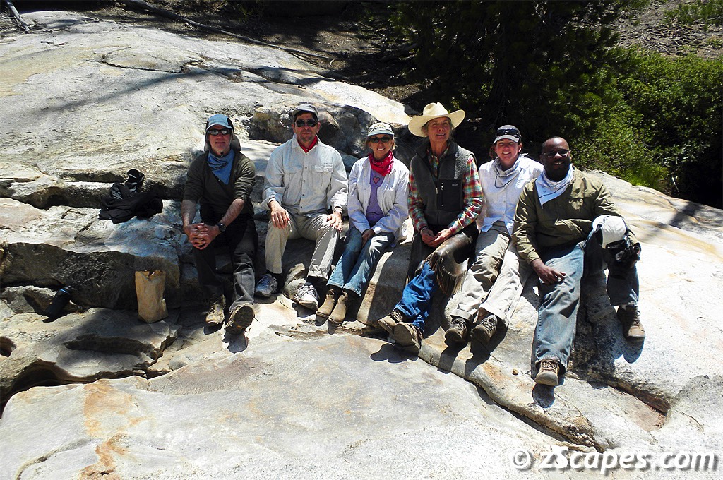 When you consider the odds of making it through the lottery to get a slot on any Yosemite Hi-Sierra Camp trip and then to get hooked up with a stellar cast of fellow travelers, the stars must have been aligned! George and I picked this time and place mostly to ensure that Sheridan would be our guide, however meeting Debbie and Dan, Izzy and Chris was to be another highlight of 6 days in the Yosemite backcountry. We all hit it off and quickly became the 'Sheridan Gang', a kinder gentler version of gentleman 'Black Bart' who successfully robbed stage coaches on their way to Yosemite in the 1870's. He never fired his unloaded shotgun, was able to pull off 27 holdups without a life lost and lifted enough loot to reside in San Francisco as a respected citizen.