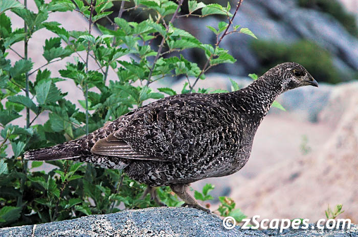 The smallest grouse in North America, the White-tailed Ptarmigan inhabitsalpine regions from Alaska to New Mexico. It has numerous adaptations to its severe habitat, including feathered toes, highly cryptic plumage, and an energy-conserving daily regime.