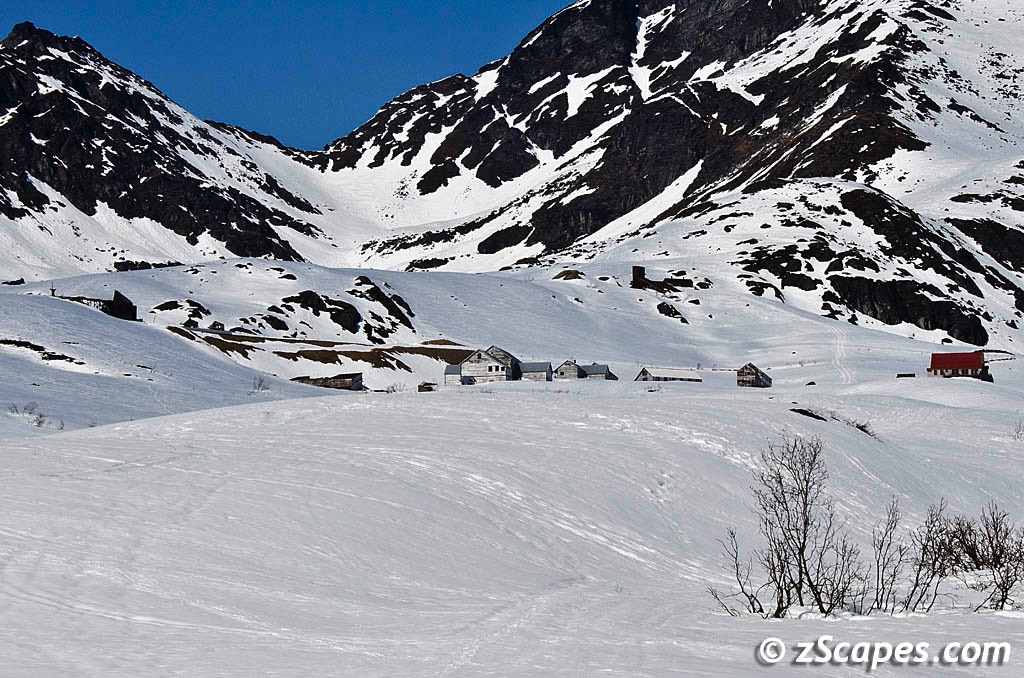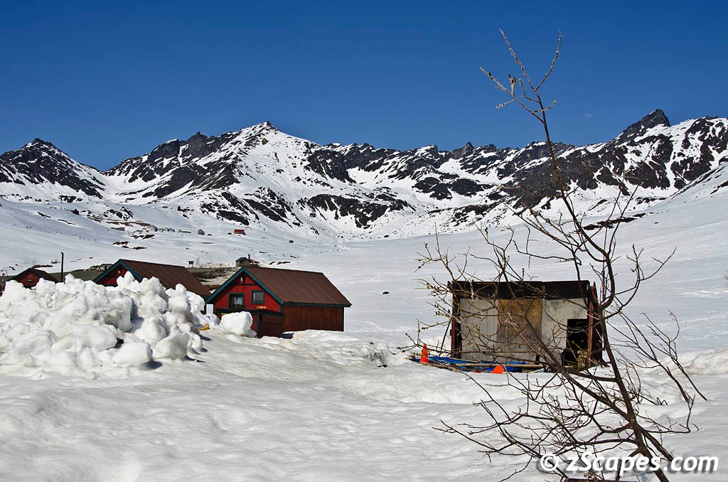 Just a few miles away from Anchorage via Palmer, lies Hatcher Pass and the Independence Mine State Historic Park that offers tours in the summer time. A beautiful bowl, fringed by sharp ridges and peaks unfolds as the elevation increases along with the Hatcher Pass Lodge. A popular recreation area year round supporting Nordic and downhill skiing, mountain climbing, white water kayaking, rock climbing, mountain biking, paragliding, hiking, snowboarding, and back country camping for the Anchorage Basin. I have been told this is also a good place to see and photo the Northern Lights. Maybe in 2013!