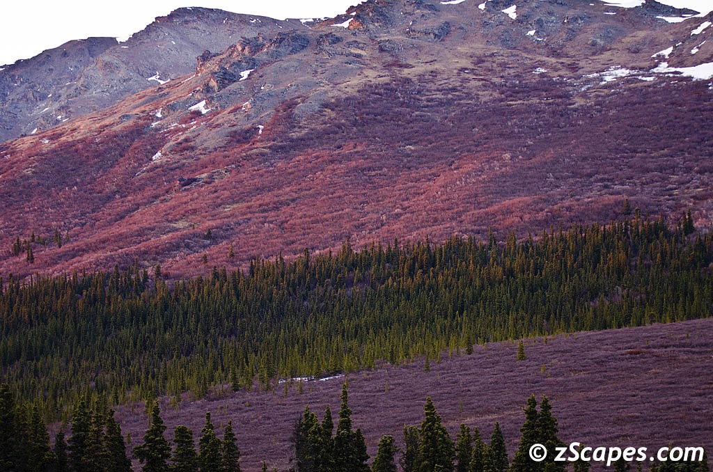 Denali park is over 6 million acres, which includes the national park enjoined with a national preserve and a designated wilderness area within the park boundaries. As the third largest park within the US system, Denali habitat is a mix of forest at the lowest elevations, including deciduous taiga. The preserve is also home to tundra at middle elevations, and glaciers, rock, and snow at the highest elevations. The longest glacier is the Kahiltna Glacier. Wildlife includes grizzly bears, Dall sheep, caribou, wolves, moose and a wide range of smaller creatures. When you take a moment to soak in the vision before you, 'immense awe' is what you walk away, at least Betsey and I did.